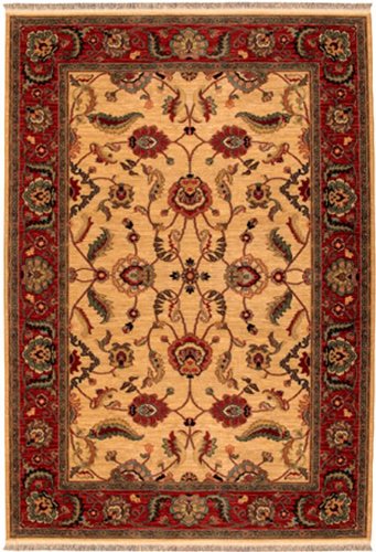 This vine and blossom design features palmettes and serrated leaves typical of both Agra and Lahore carpets woven during the mid 17th Century Mogul Dynasty. Karastan's modern day interpretation is enhanced with a fresh color palette of coral reds, with ac Read more...